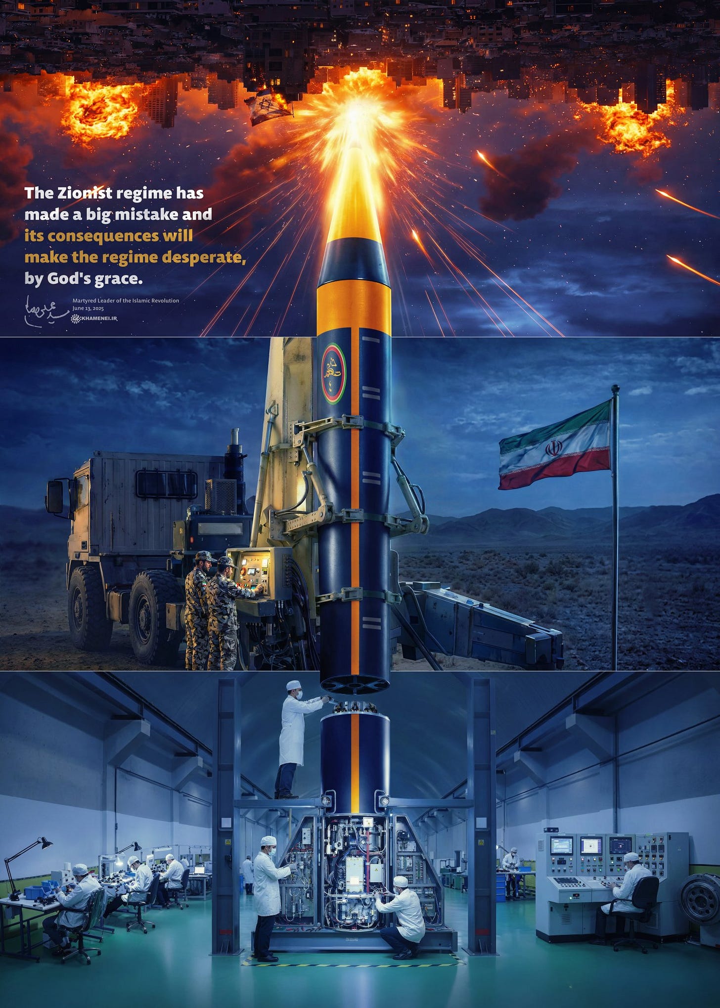 The Zionist regime has made a big mistake, and its consequences will make the regime desperate, by God’s grace. Martyred Leader of the Islamic Revolution June 13, 2025 KHAMENEI.IR