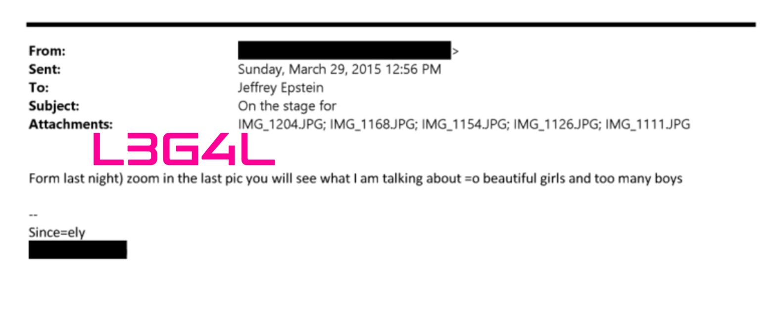 She took several photos. The following day, she emailed the photos to Epstein and gave him a report. She wrote “no beautiful girls” and complained “too many boys.”