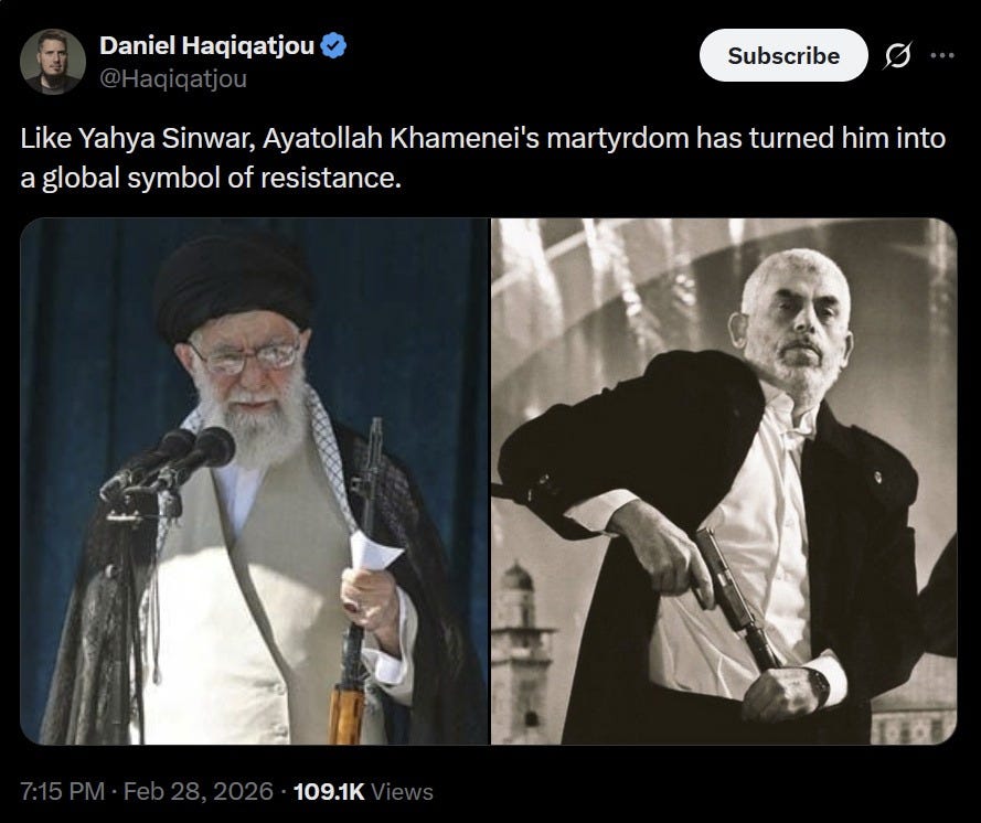 American Muslim writer Daniel Haqiatjou criticized that killing of Khamenei “turned him into a global symbol of resistance.”