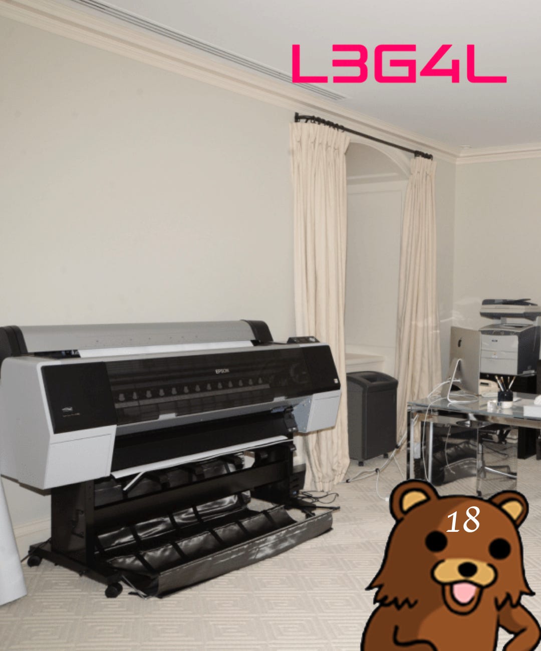 Epstein’s 9 East 71st Street residence in New York had a room dedicated to printing images of his victims. Epstein had an expensive Epson Surecolor P8000 44” Wide-Format Printer. Epson markets this model specifically for “photo and fine art media.” Epstein used it to print large posters of his victims, which he framed and hung throughout his residences.