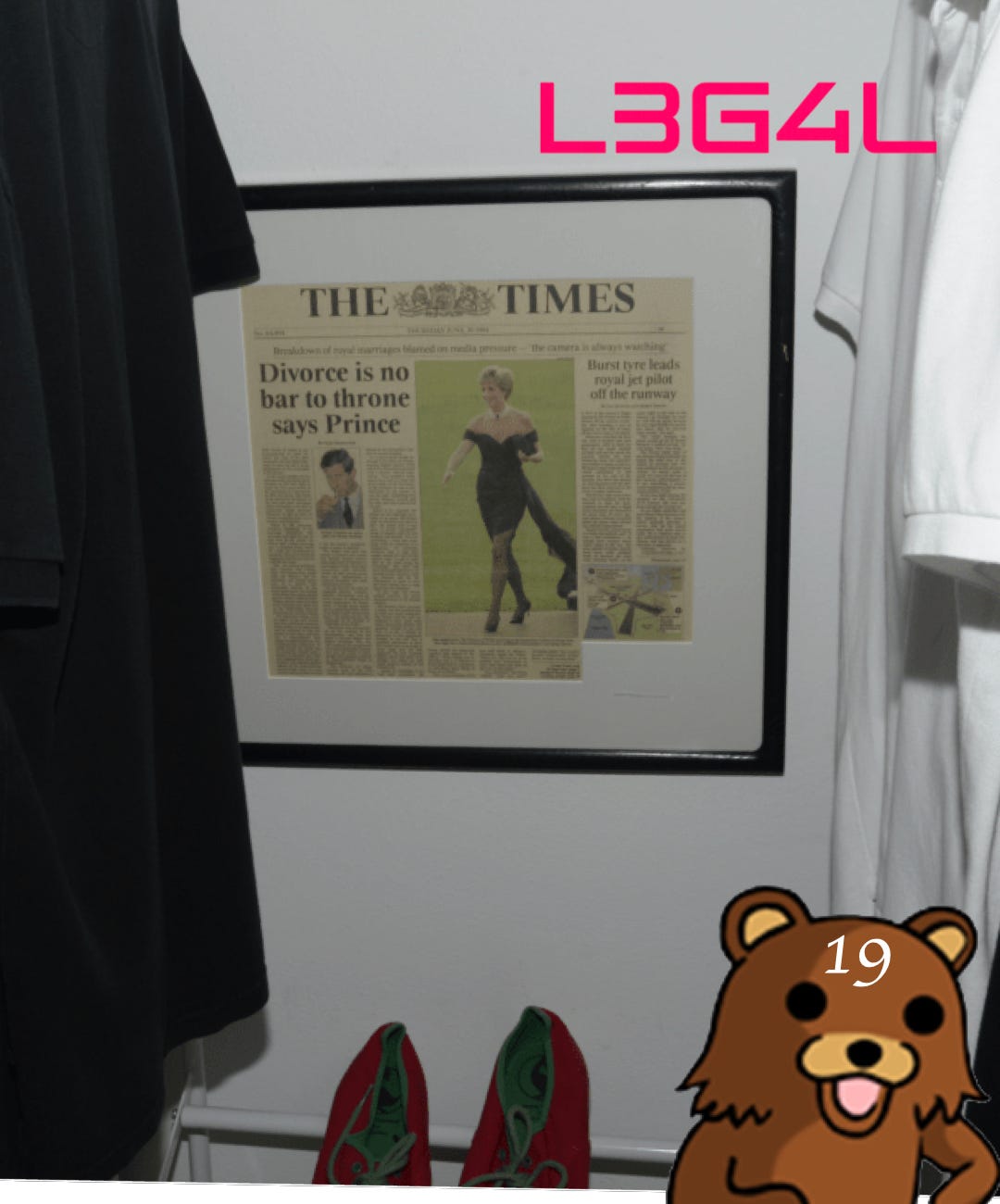 #19 Framed article about Princess Di’s divorce with famous photo of her wearing the “Revenge Dress”